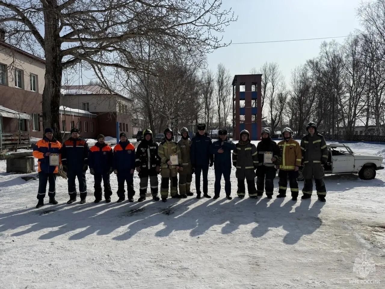 По результатам состязаний первое место заняла команда поисково-спасательного отряда имени В.А. Полякова, показавшая наивысшие скорость и качество выполнения задачи. Вторыми стали огнеборцы из четвертой пожарно-спасательной части города Корсакова, которые побеждали в прошлом году. Третье место досталось команде первой пожарно-спасательной части Южно-Сахалинска.