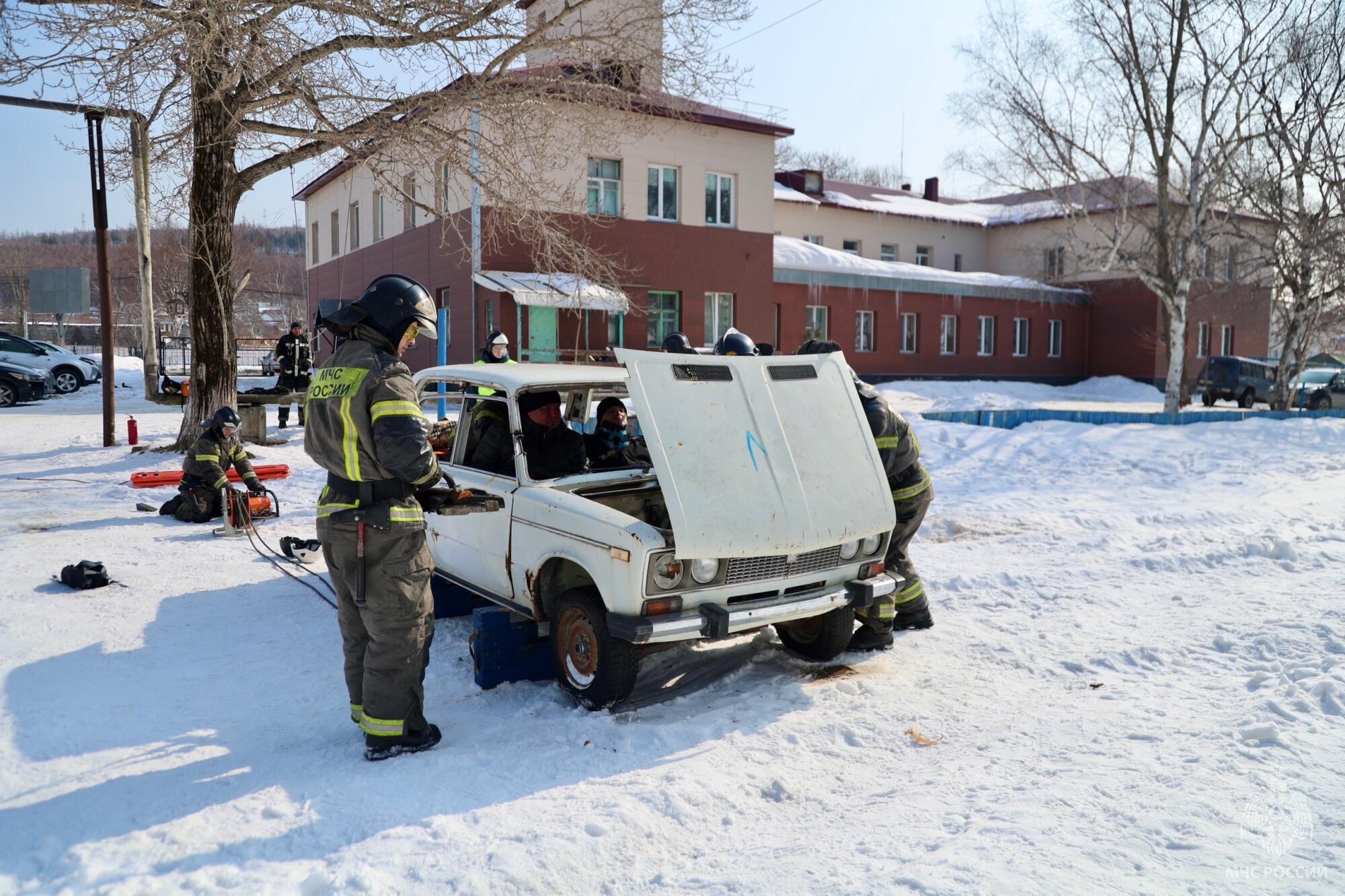 На базе второй пожарно-спасательной части Южно-Сахалинска прошли соревнования за звание лучшей команды МЧС России по проведению аварийно-спасательных работ при дорожно-транспортных происшествиях.